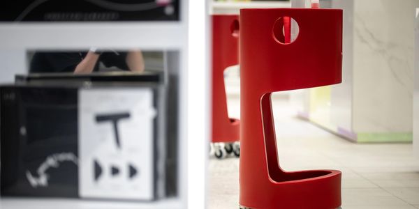 Avec sa forme cylindrique, Diego se glisse facilement dans le parcours de magasinage. Il peut transporter toutes sortes de produits, des plus petits aux plus volumineux — skis, couches, bouteilles de vin, tout y passe.